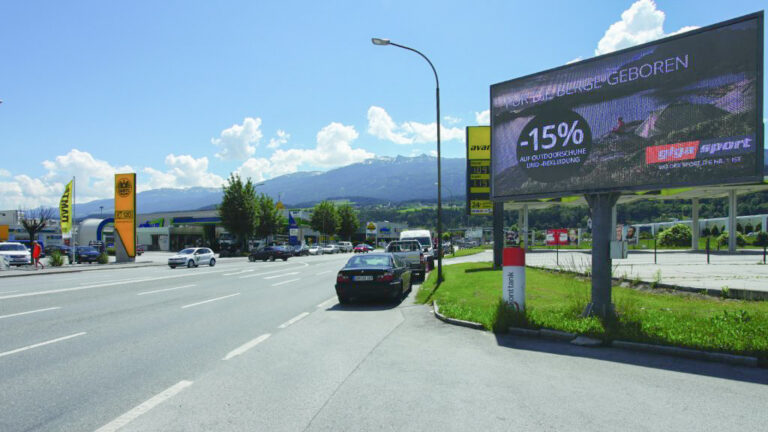 Diese digitale LED-Werbefläche liegt an der stark frequentierten Kreuzung Langer Weg/Andechsstraße – direkt gegenüber dem ÖAMTC, nahe dem OBI Baumarkt und dem Greif Center. Durch die Nähe zu Einzelhandel, Dienstleistern und dem Autopark herrscht eine konstant hohe Besucher- und Verkehrsdichte. Die Werbeanlage ist optimal sichtbar für Autofahrer sowie Kundschaft der umliegenden Betriebe und bietet einen wirkungsvollen, reichweitenstarken Auftritt.