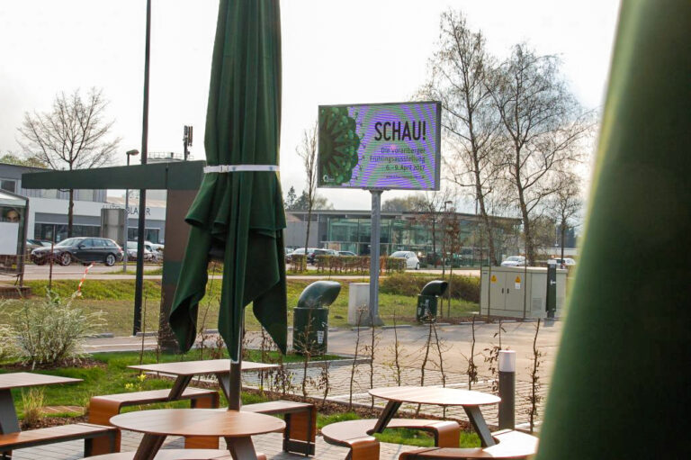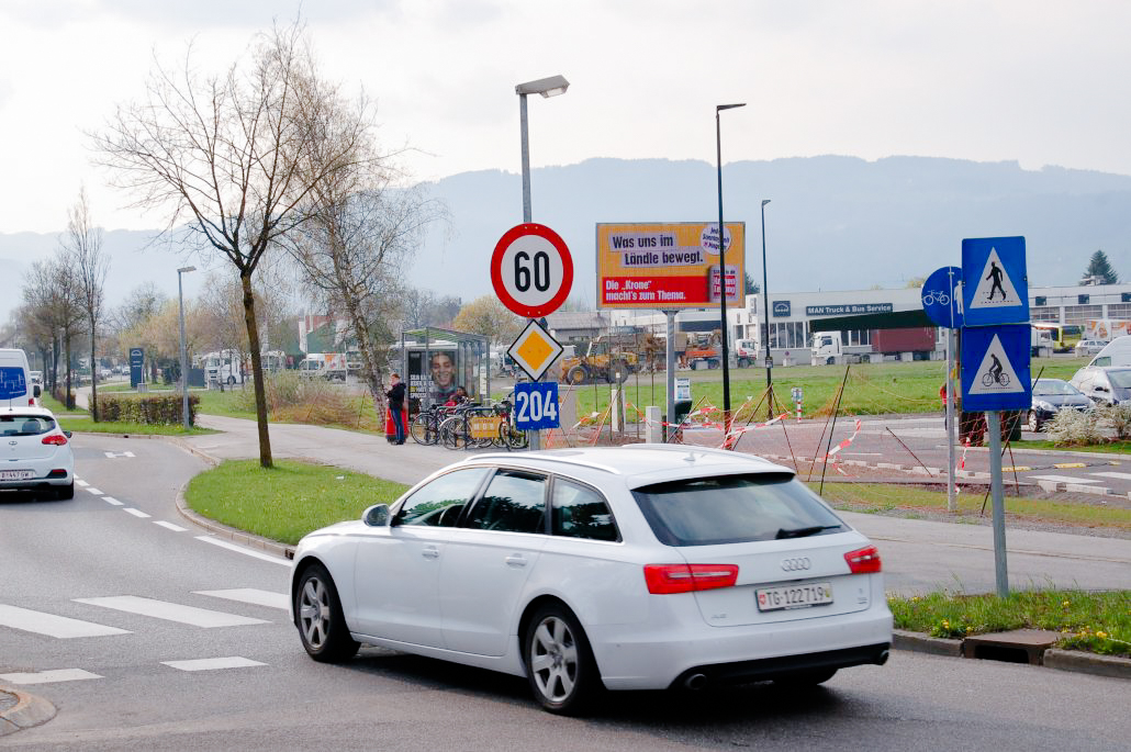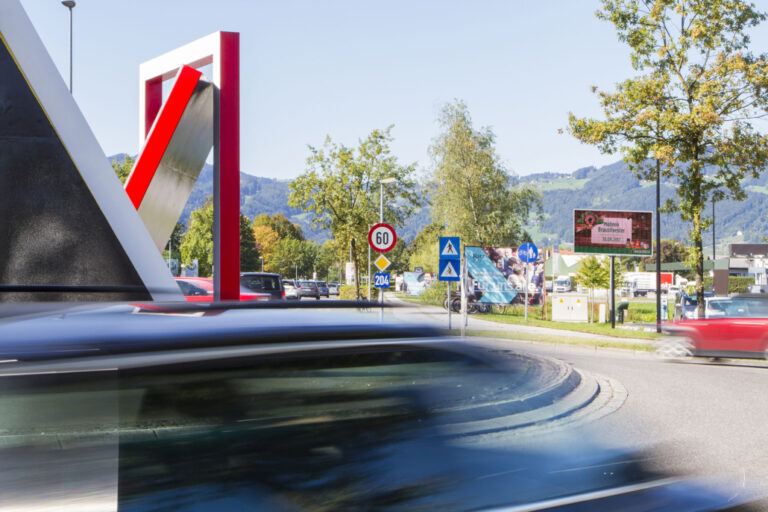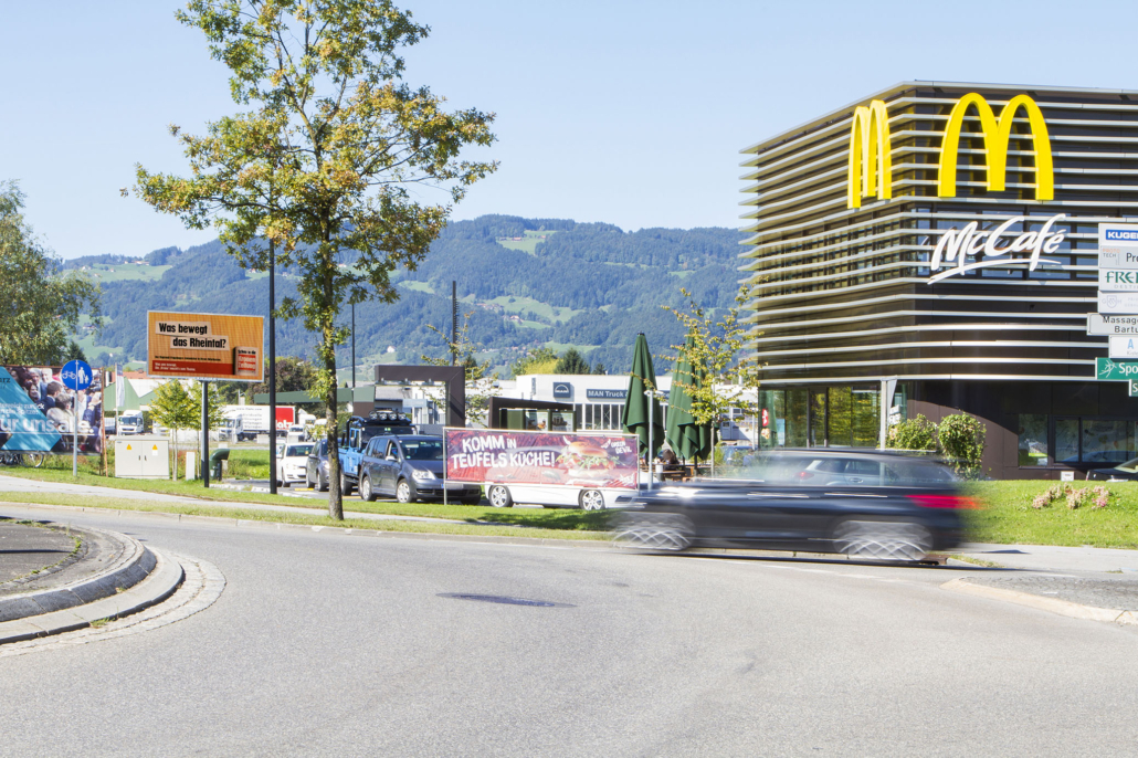 Diese LED-Anlage liegt an der L204 Dornbirner Straße am Kreisverkehr Millenium Park Dornbirn/Lustenau. Direkt an diesem Standort befindet sich eine der größten MC Donalds Filialen Österreichs die sehr stark frequentiert ist. Diese Straße ist die Hauptverbindungsachse zwischen Österreich und der Schweiz.